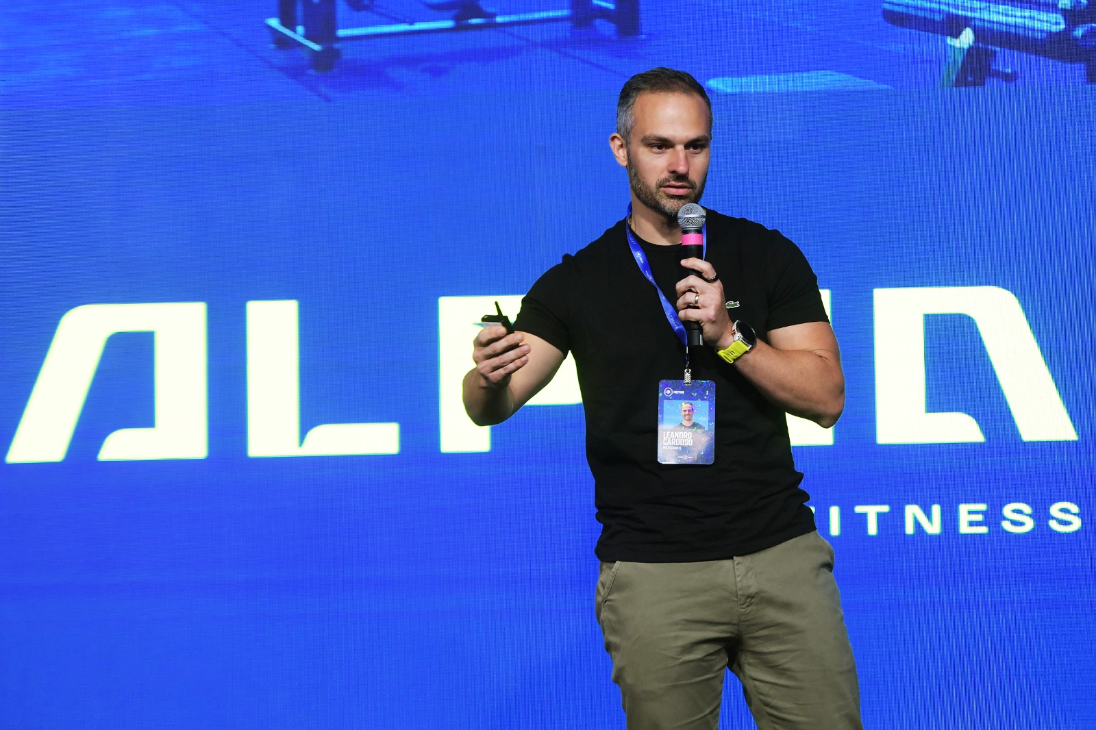 Leandro Cardoso, CEO da Alpha Fitness, rede com 27 unidades, e líder da ACAD Brasil na Bahia, escolheu como tema para sua palestra a Liderança com propósito e falou da importância de humanizar as relações dentro dos negócios do fitness, que tem como cerne cuidar de pessoas.