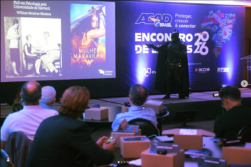 Fechamento do Encontro de Líderes tem até super-herói! E não é que o chamado Batman brasileiro também esteve no Encontro de Líderes? Cristiano Zanetta, profissional de Educação Física, empresário, palestrante e filantropo fez uma palestra sobre liderança humanizada, que emocionou os presentes ao encontro. Vestido como Batman, Zanetta convidou a plateia à reflexão sobre trabalho social, ações solidárias, cuidados com o próximo e a importância de se doar para o outro. “Fico emocionado de estar aqui, com tantos colegas de profissão, que hoje lideram academias de todo o país. Espero que eu tenha contribuído para tornar o dia a dia de vocês na liderança, mais leve e humanizado.”